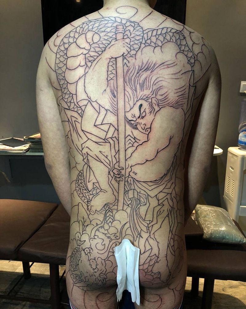 • T云龙九郎纹身图片_背部老传统云龙九郎纹身图案
