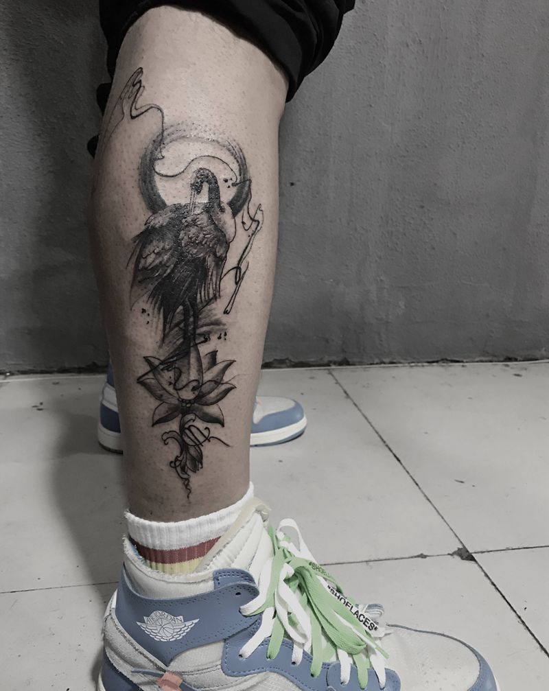 当前位置: 首页 >江苏省宿迁市纹身店-帝域刺青纹身图案>鹤纹身图片_腿部水墨纹身图案
