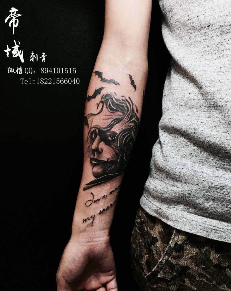 当前位置: 首页 >江苏省宿迁市纹身店-帝域刺青纹身图案>I’m a man of my word(我是个言出必行的人。)—小丑纹身图片