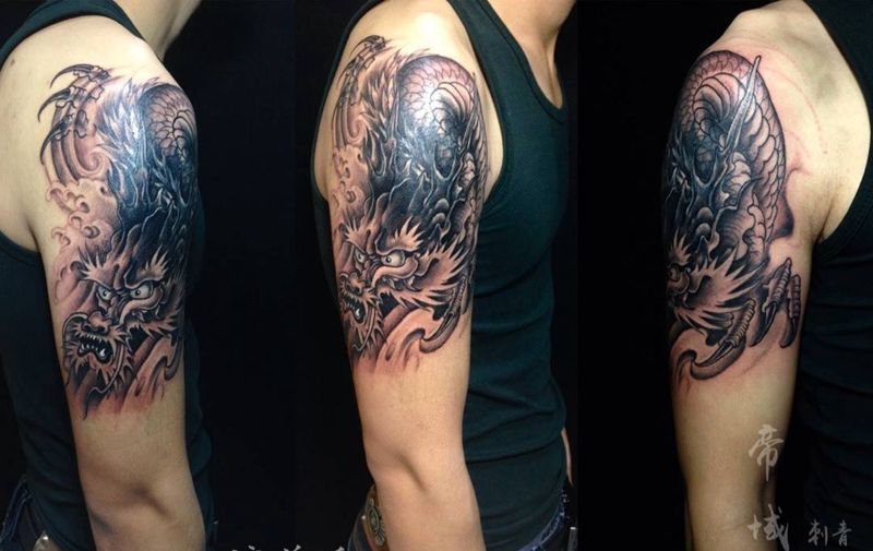 • 纹身吧推荐的披肩图腾半胛纹身图案作品展示