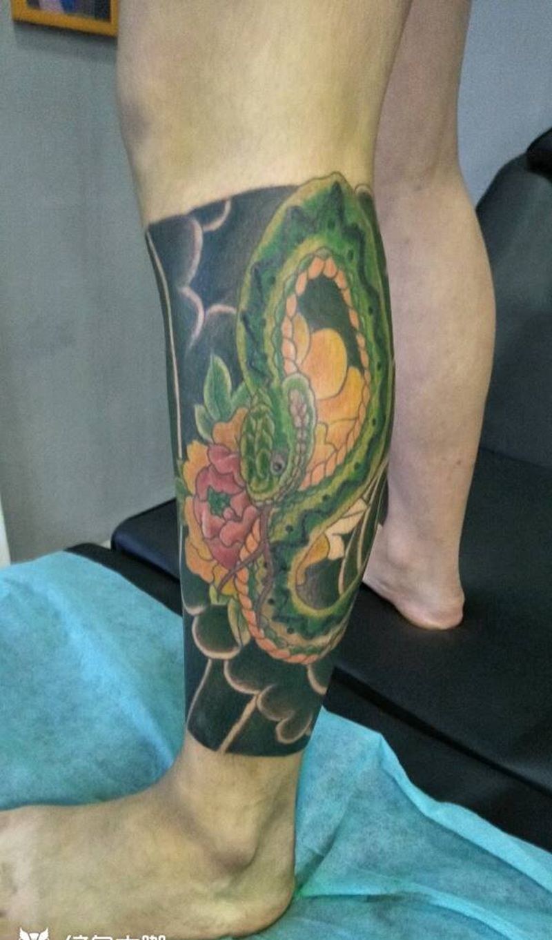 • T网红王老大花腿龙纹身图片_腿部新传统纹身图案