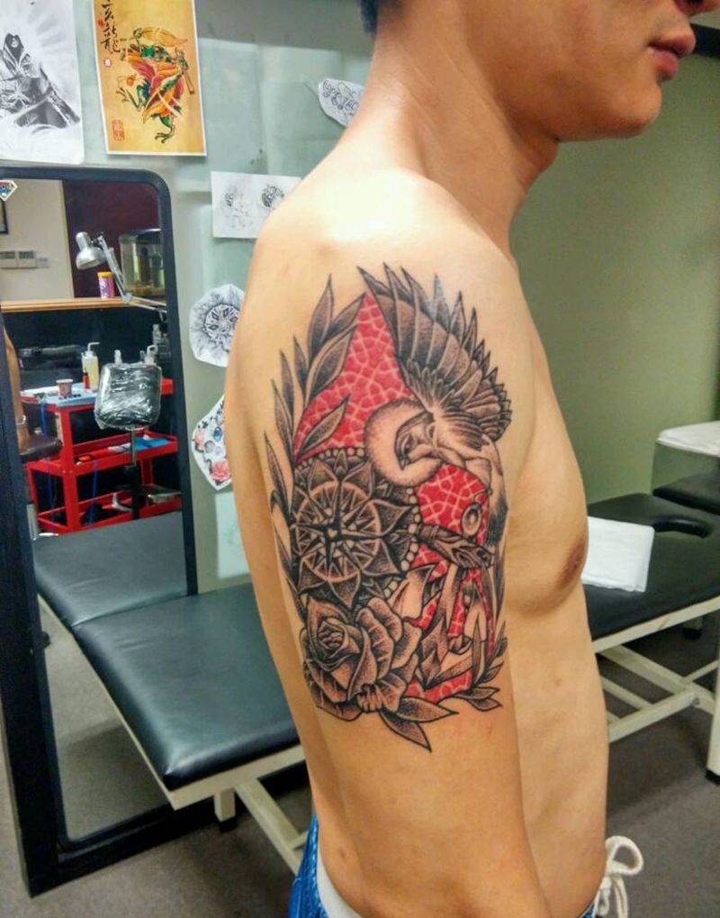 • 纹身吧推荐的披肩图腾半胛纹身图案作品展示