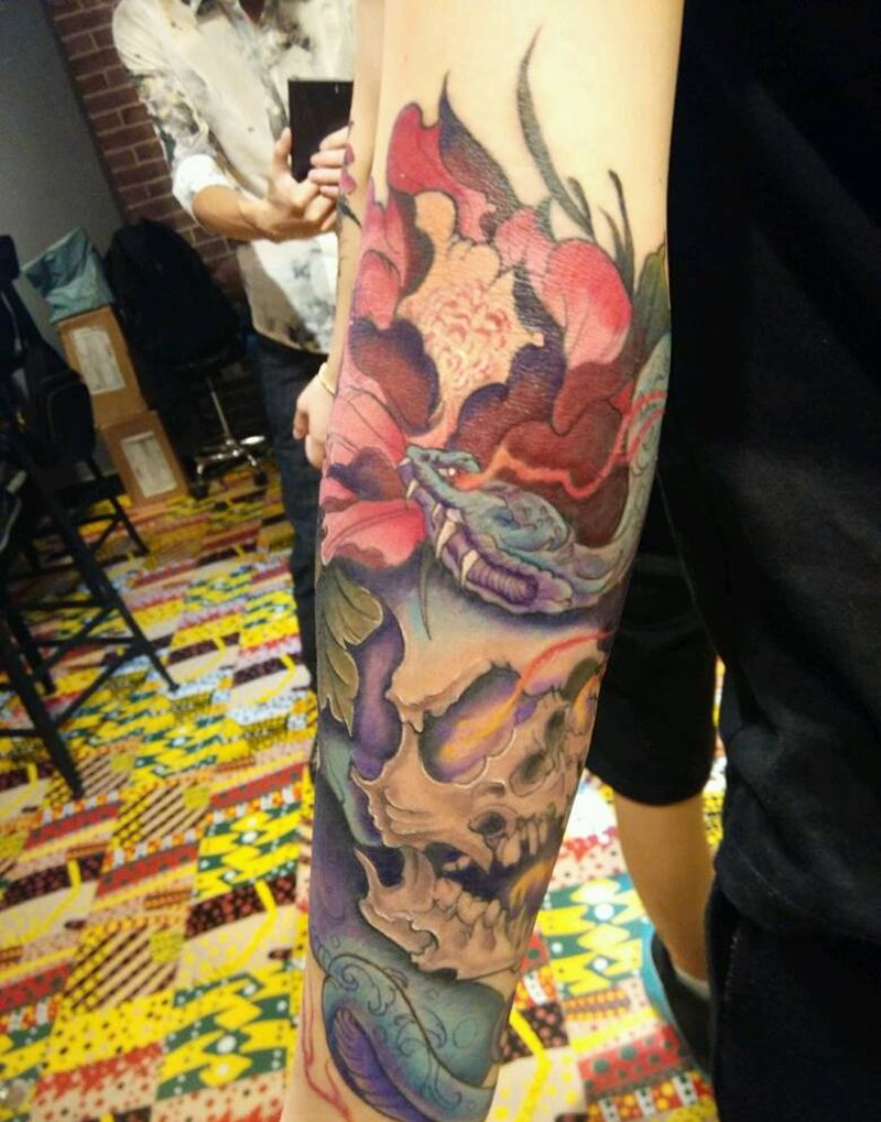 当前位置: 首页 >浙江省杭州市纹身店-杭州三鱼纹身工作室纹身图案>蛇骷髅纹身图片