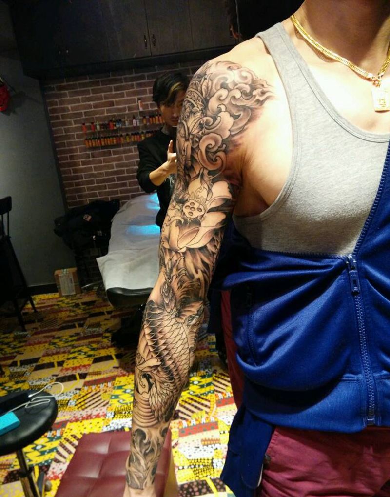 当前位置: 首页 >浙江省杭州市纹身店-杭州三鱼纹身工作室纹身图案>明年上色象神鲤鱼纹身图片