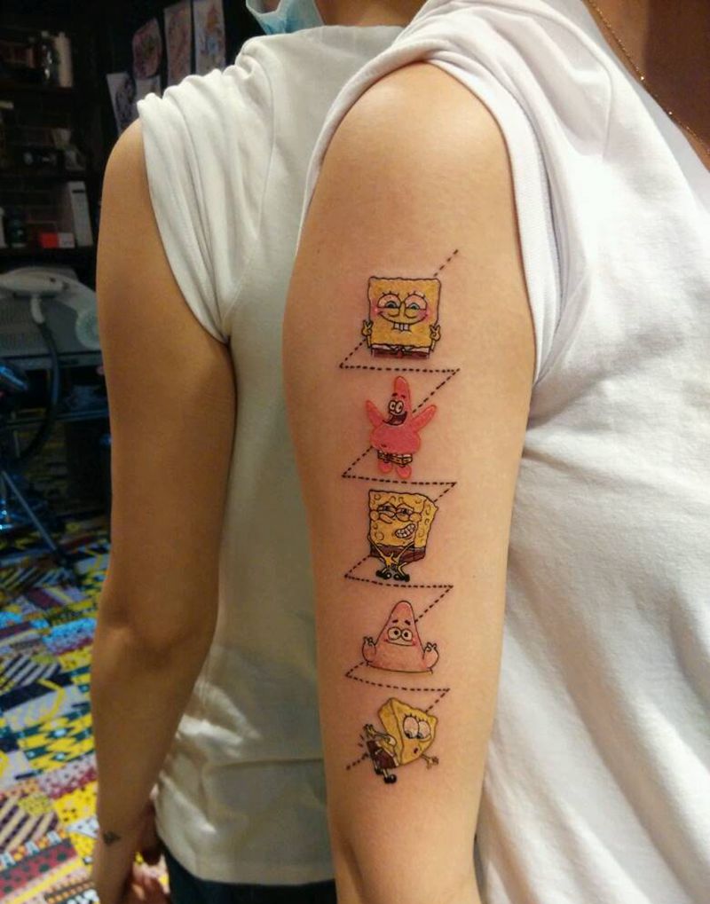当前位置: 首页 >浙江省杭州市纹身店-杭州三鱼纹身工作室纹身图案>海绵宝宝派大星纹身图片