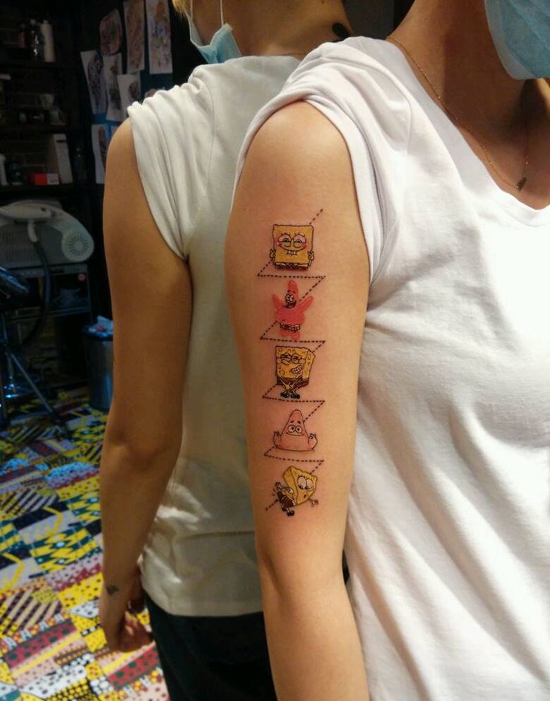 当前位置: 首页 >浙江省杭州市纹身店-杭州三鱼纹身工作室纹身图案>海绵宝宝派大星纹身图片