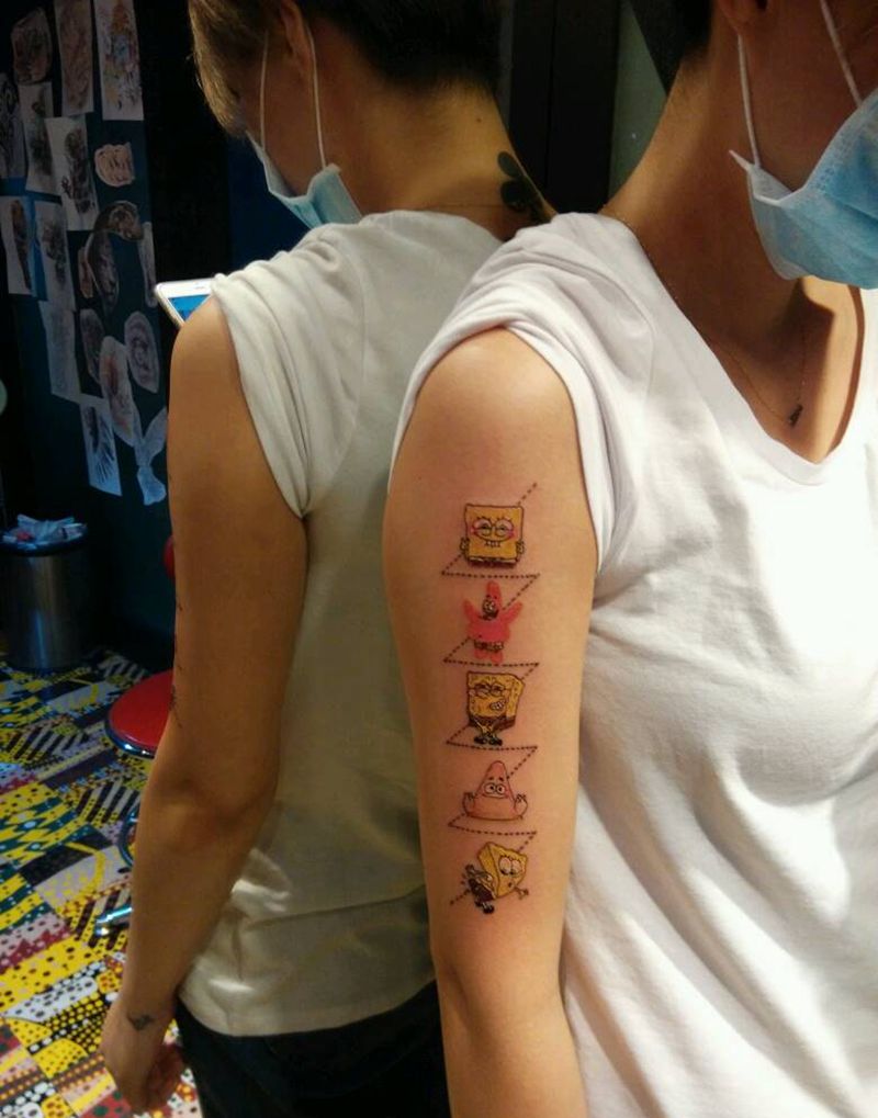 当前位置: 首页 >浙江省杭州市纹身店-杭州三鱼纹身工作室纹身图案>海绵宝宝派大星纹身图片
