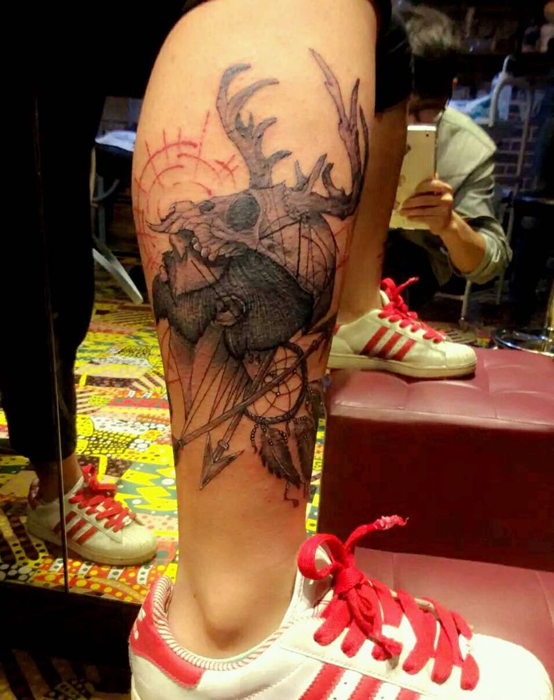 • T网红王老大花腿龙纹身图片_腿部新传统纹身图案