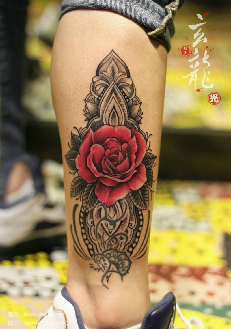 • T网红王老大花腿龙纹身图片_腿部新传统纹身图案