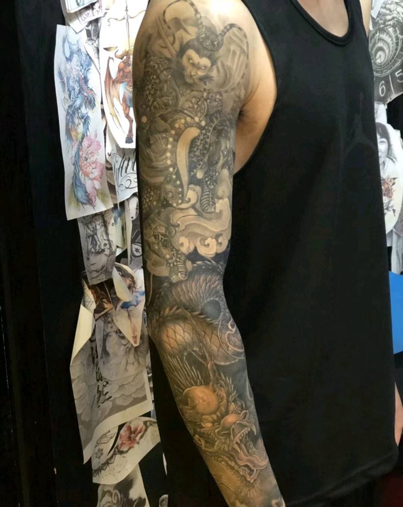 当前位置: 首页 >浙江省杭州市纹身店-杭州三鱼纹身工作室纹身图案>悟空龙花臂纹身图片