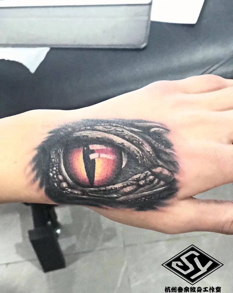 • 手背潮流时尚的玫瑰花眼睛纹身图案