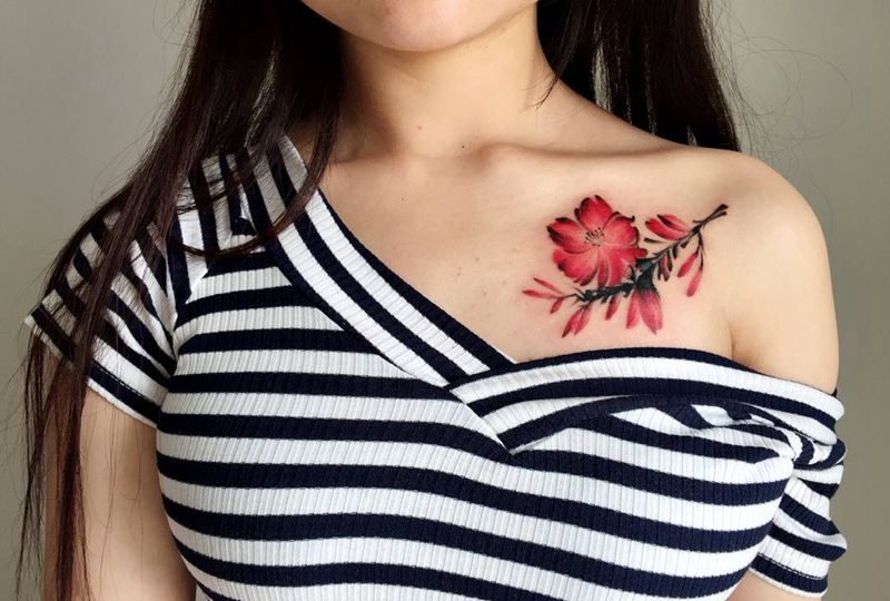 • 女性大花胸纹身_43张霸气漂亮的女性大花胸纹身图案作品