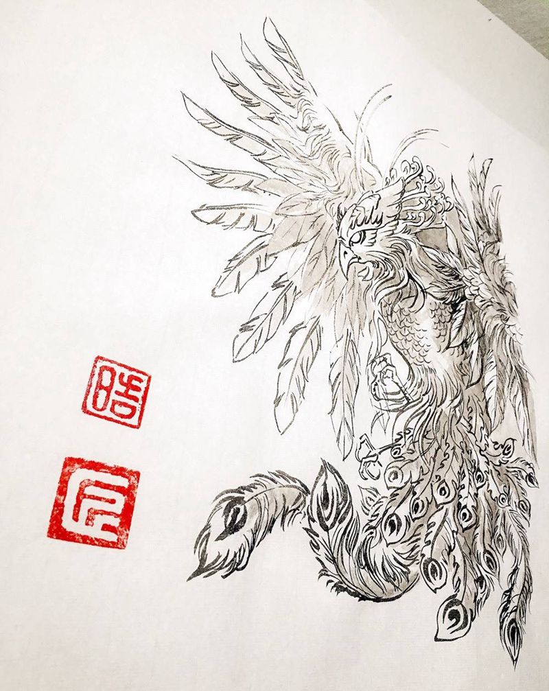 当前位置: 首页 >浙江省杭州市纹身店-久灵纹艺纹身图案>凤凰手稿,欢迎预约纹身图片