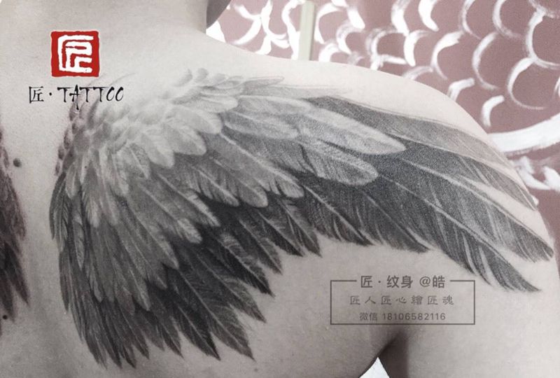 当前位置: 首页 >浙江省杭州市纹身店-久灵纹艺纹身图案>翅膀纹身图片_成品背部欧美写实动物静物原创纹身图案