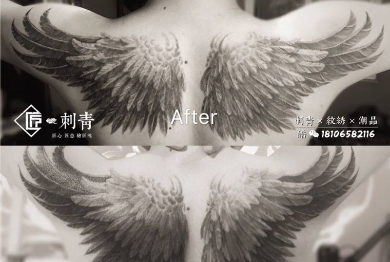 当前位置: 首页 >浙江省杭州市纹身店-久灵纹艺纹身图案>细节完善后的翅膀纹身图片