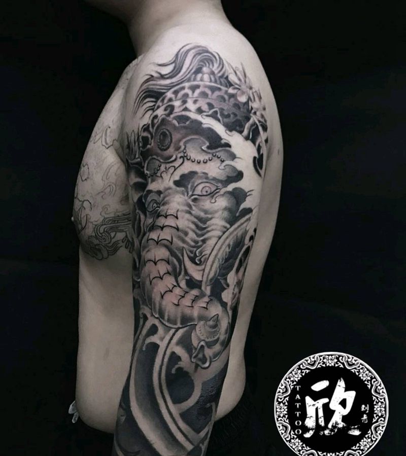 当前位置: 首页 >浙江省杭州市纹身店-纹艺复兴纹身图案>花臂拼接纹身图片_手臂新传统纹身图案