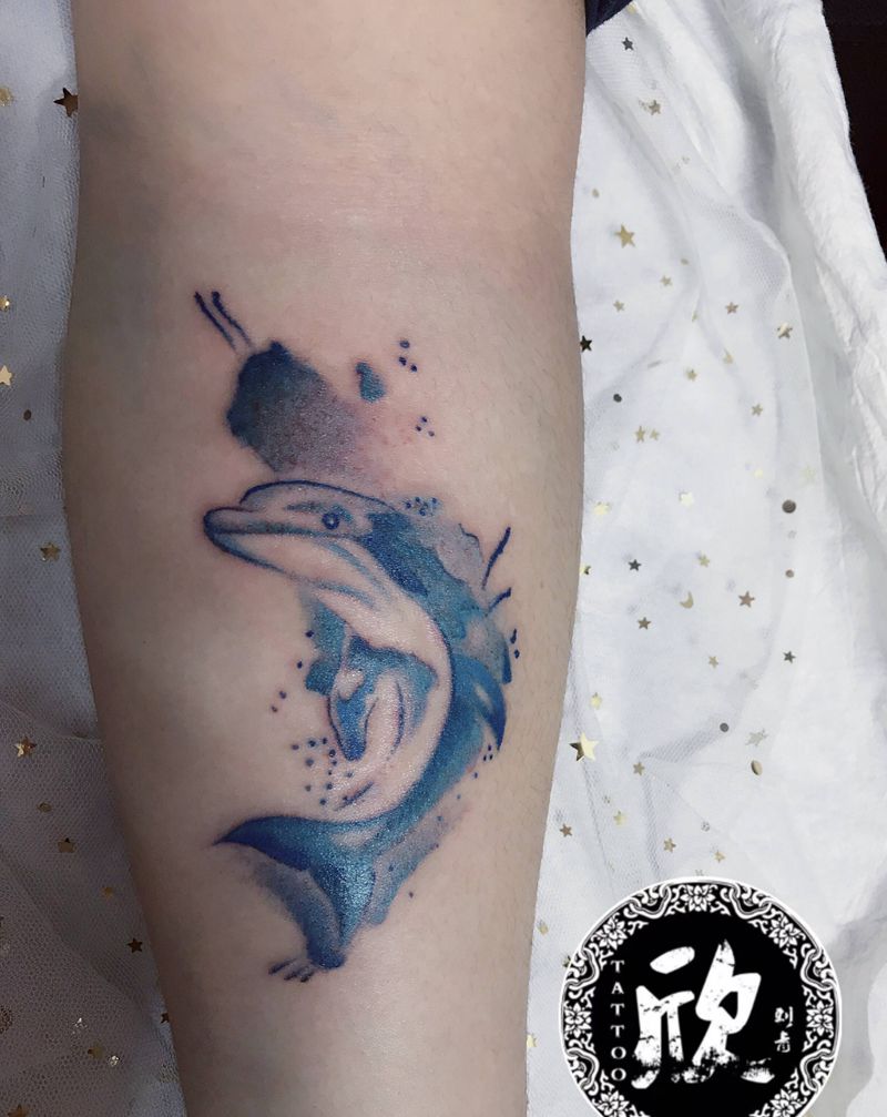 当前位置: 首页 >浙江省杭州市纹身店-纹艺复兴纹身图案>海豚纹身图片_手臂水彩纹身图案