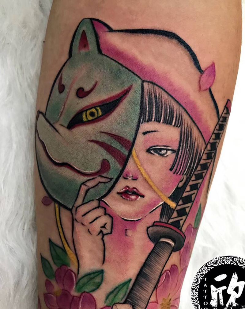 当前位置: 首页 >浙江省杭州市纹身店-纹艺复兴纹身图案>艺妓纹身图片_手臂新传统纹身图案