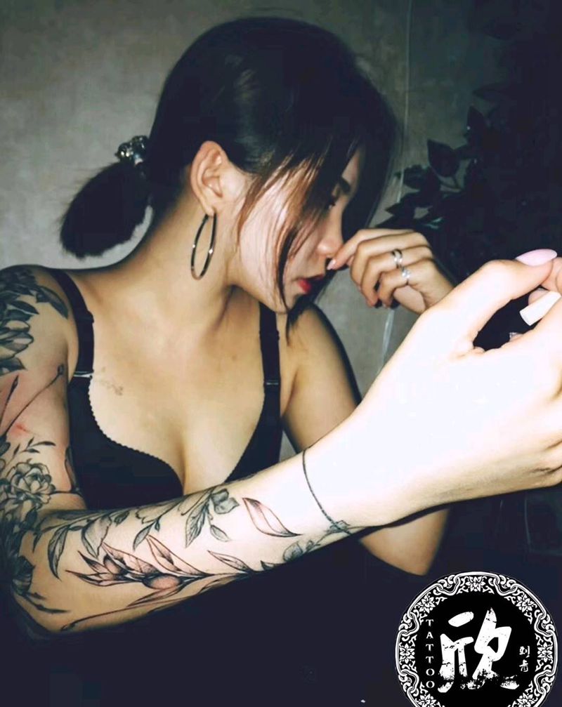 当前位置: 首页 >浙江省杭州市纹身店-纹艺复兴纹身图案>花臂 点刺 花纹身图片_手臂清新植物原创黑灰花成品纹身图案