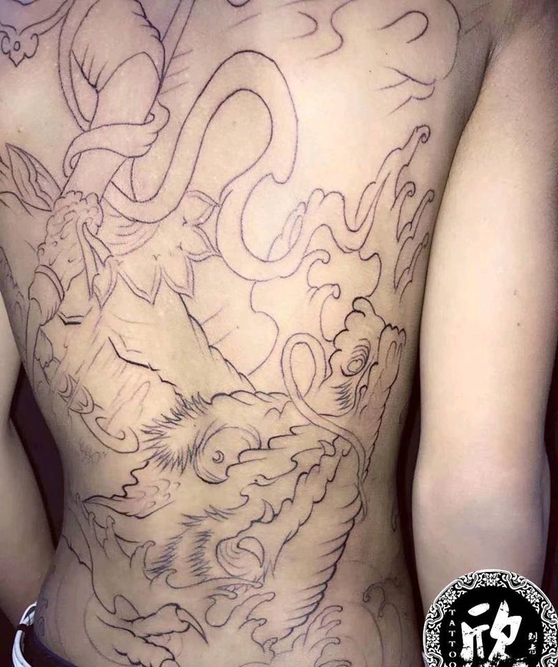 当前位置: 首页 >浙江省杭州市纹身店-纹艺复兴纹身图案>哪吒闹海纹身图片_背部传统割线手稿纹身图案