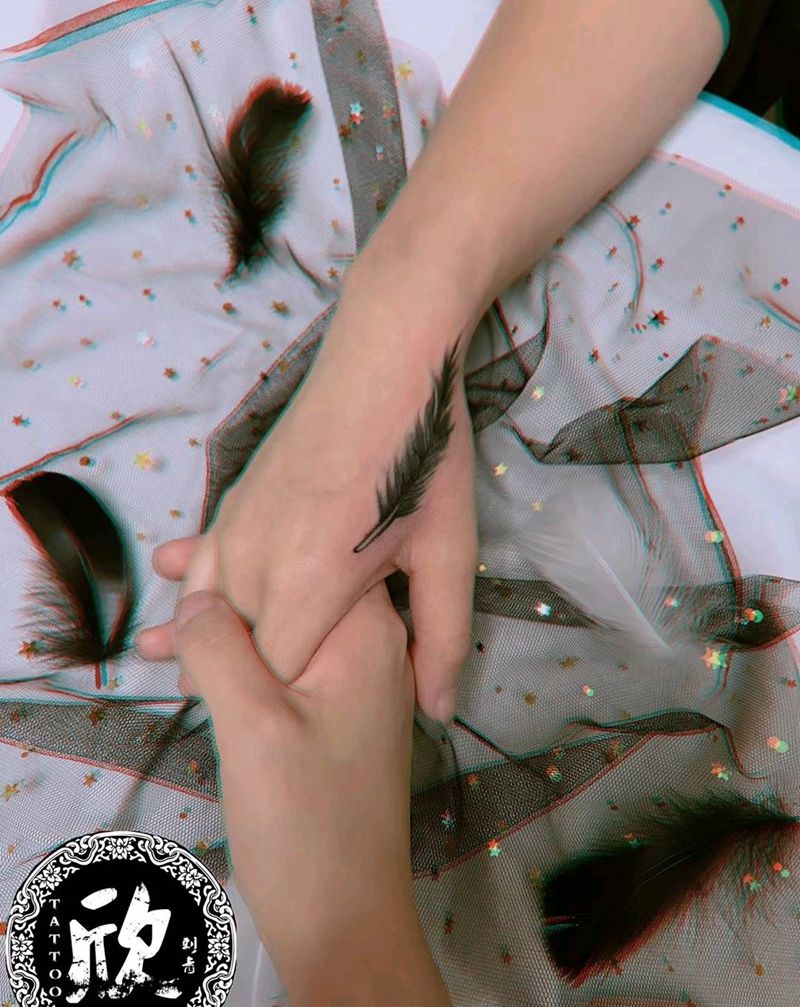遮盖羽毛纹身图片_手部清新动物静物遮盖成品纹身图案