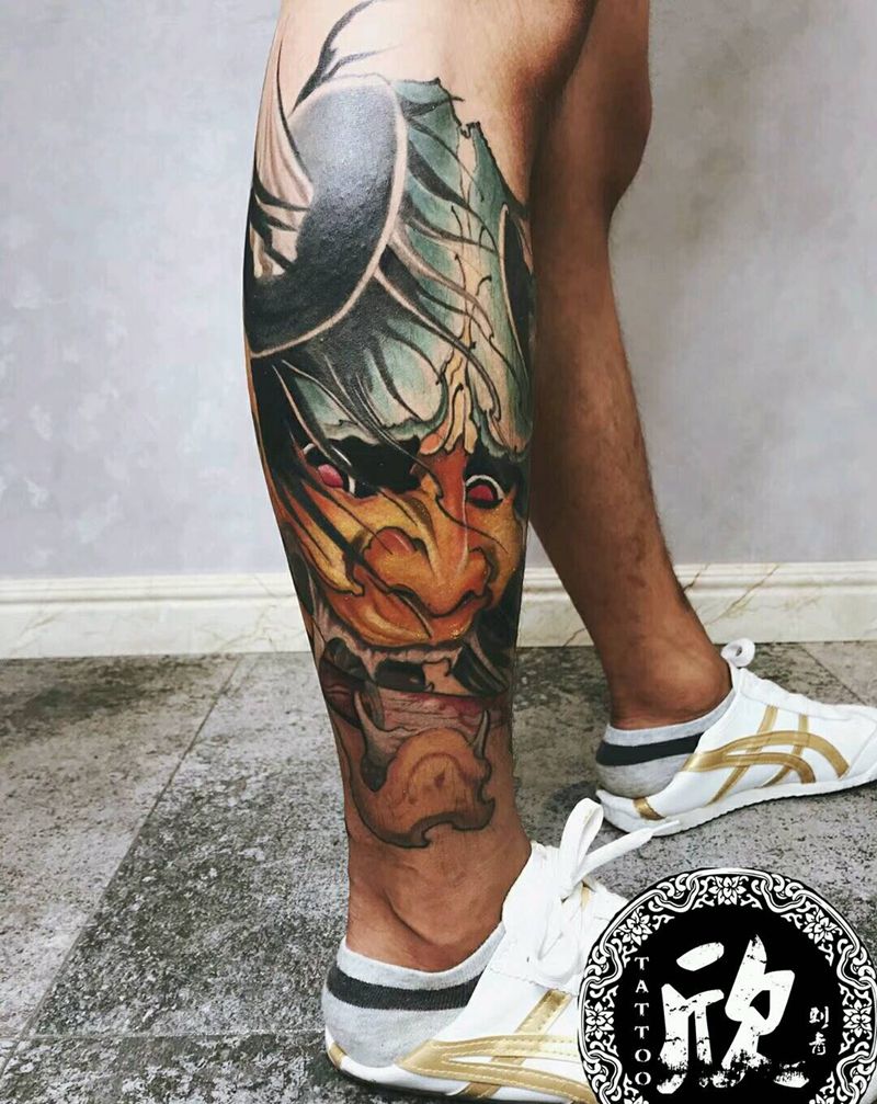 般若1纹身图片_腿部传统人物鬼神彩色成品纹身图案