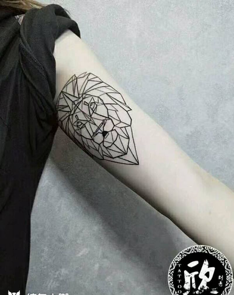 几何狮子纹身图片_手臂几何纹身图案
