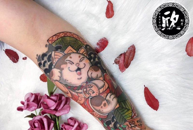 当前位置: 首页 >浙江省杭州市纹身店-纹艺复兴纹身图案>招财猫纹身图片