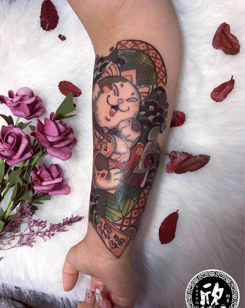 当前位置: 首页 >浙江省杭州市纹身店-纹艺复兴纹身图案>招财猫纹身图片