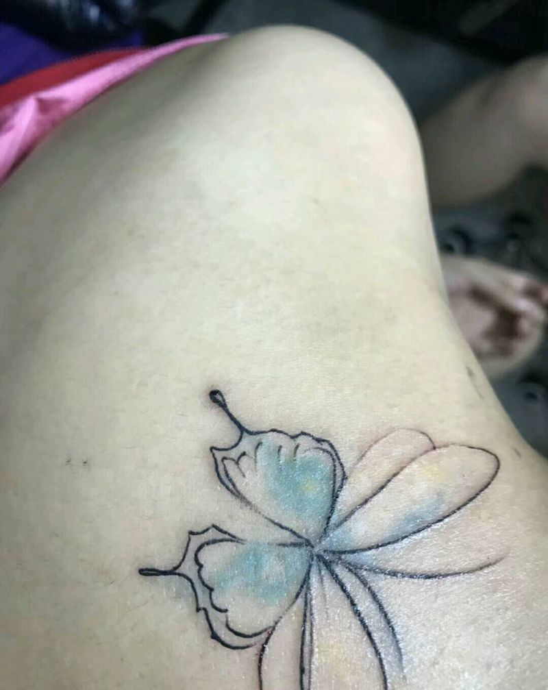 修改蝴蝶纹身图片_肩部背部清新写实动物遮盖修改蝴蝶成品纹身图案