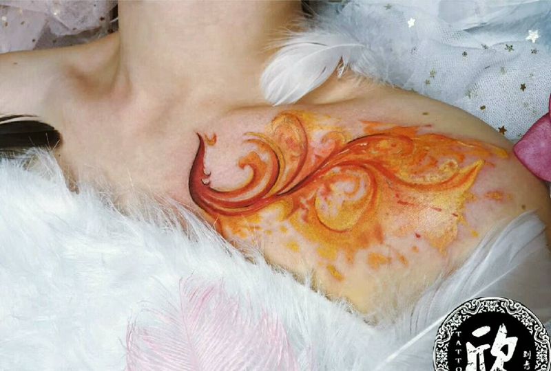 当前位置: 首页 >浙江省杭州市纹身店-纹艺复兴纹身图案>凤凰(原创)纹身图片_肩部水彩纹身图案