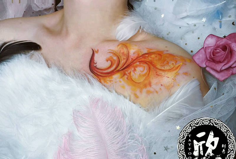 当前位置: 首页 >浙江省杭州市纹身店-纹艺复兴纹身图案>凤凰(原创)纹身图片_肩部水彩纹身图案