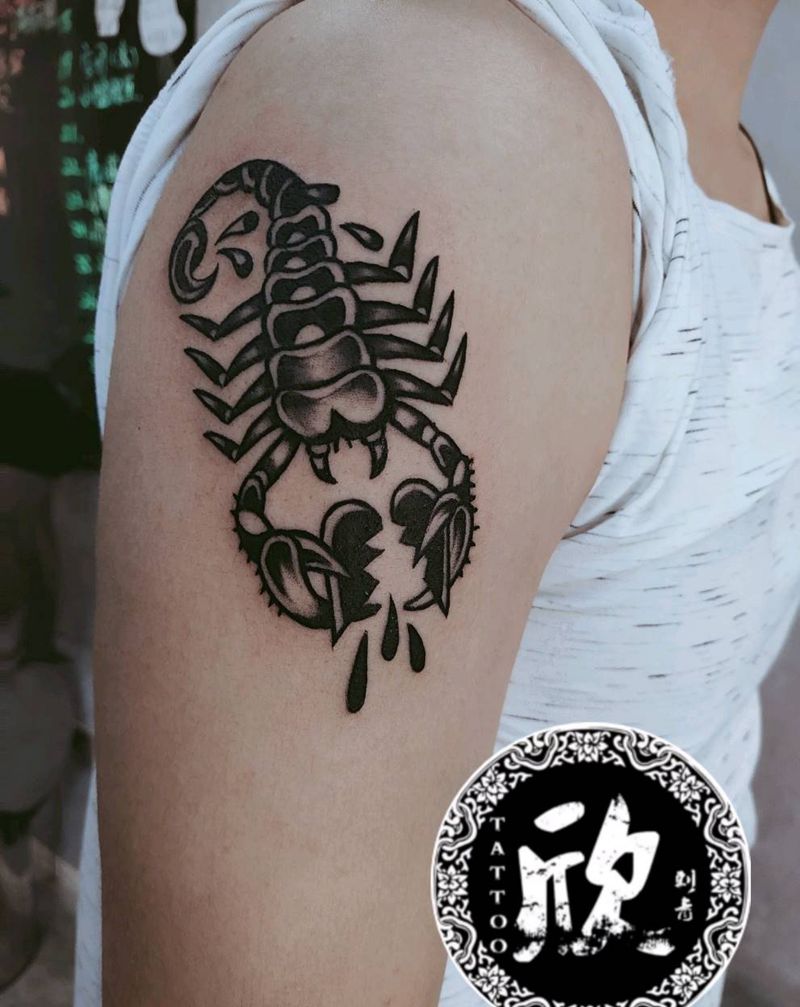 当前位置: 首页 >浙江省杭州市纹身店-纹艺复兴纹身图案>school蝎子纹身图片_手臂纹身图案