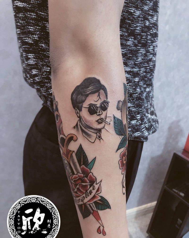 当前位置: 首页 >浙江省杭州市纹身店-纹艺复兴纹身图案>发哥纹身图片_手臂Old School纹身图案