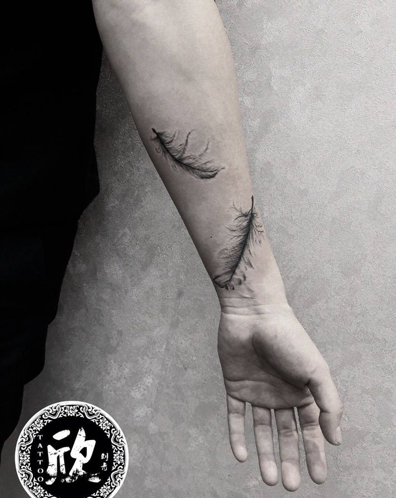 当前位置: 首页 >浙江省杭州市纹身店-纹艺复兴纹身图案>羽毛纹身图片_手臂纹身图案