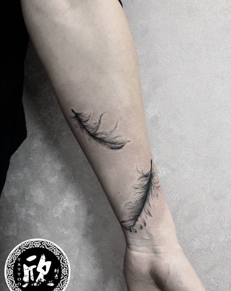 当前位置: 首页 >浙江省杭州市纹身店-纹艺复兴纹身图案>羽毛纹身图片_手臂纹身图案