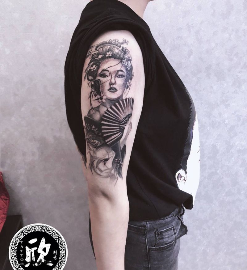 当前位置: 首页 >浙江省杭州市纹身店-纹艺复兴纹身图案>艺伎纹身图片_手臂纹身图案