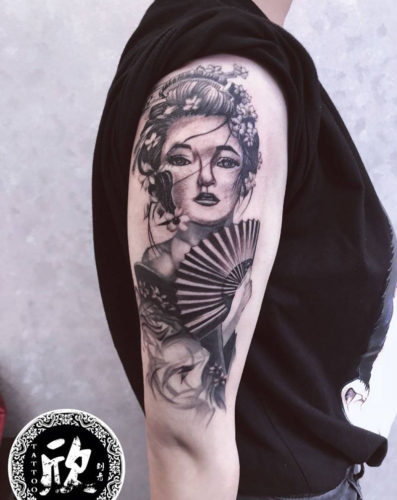 当前位置: 首页 >浙江省杭州市纹身店-纹艺复兴纹身图案>艺伎纹身图片_手臂纹身图案