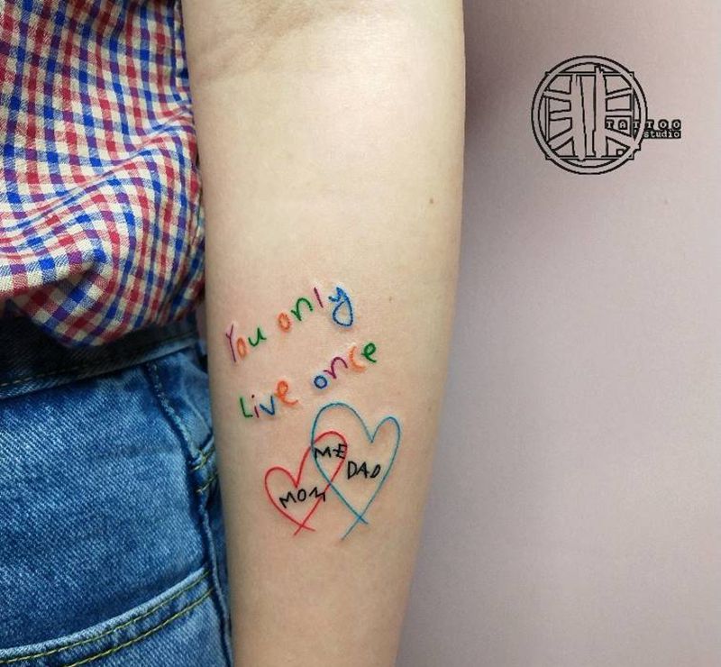 • T家庭图,一家四口生日纪念!纹身图片_手臂纹身图案