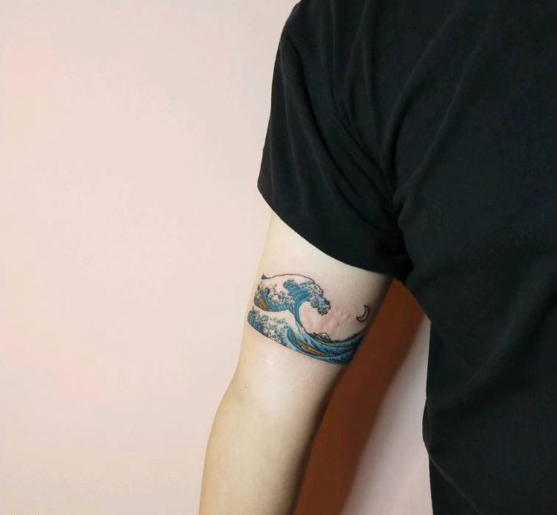 当前位置: 首页 >浙江省杭州市纹身店-非·刺青工作室纹身图案>神奈川冲浪里纹身图片_手臂新传统纹身图案