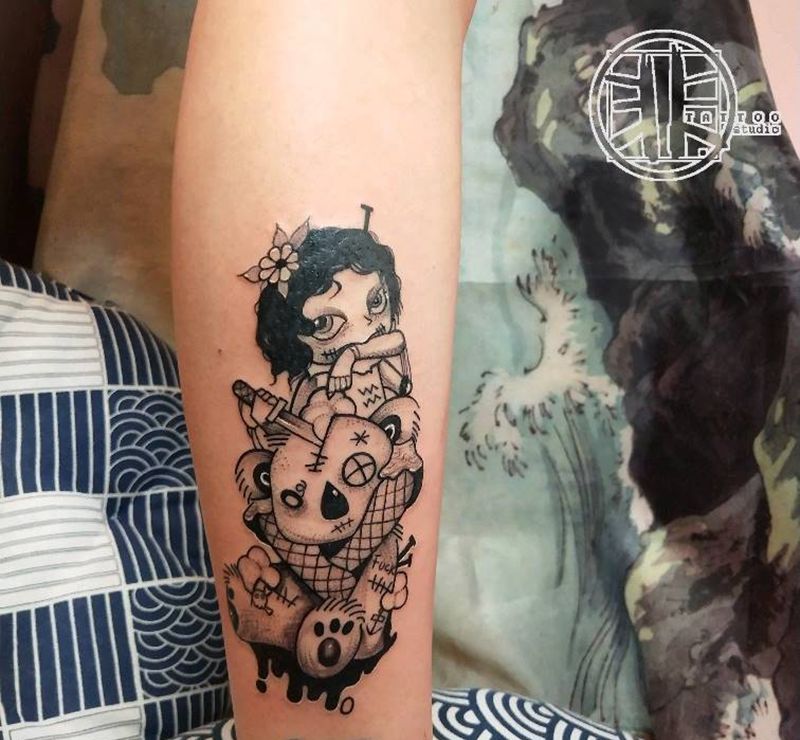 当前位置: 首页 >浙江省杭州市纹身店-非·刺青工作室纹身图案>卡通人物纹身图片_腿部点刺线条纹身图案