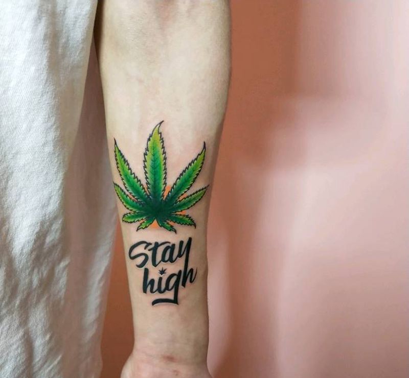 当前位置: 首页 >浙江省杭州市纹身店-非·刺青工作室纹身图案>麻叶纹身图片_手臂New School大麻叶纹身图案