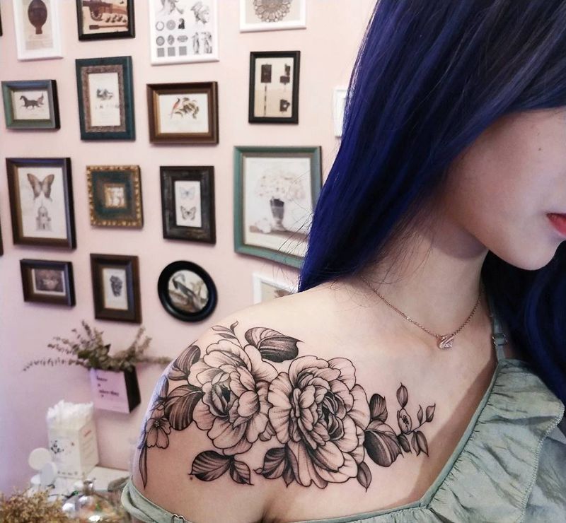 素花纹身图片_肩部点刺素花纹身图案