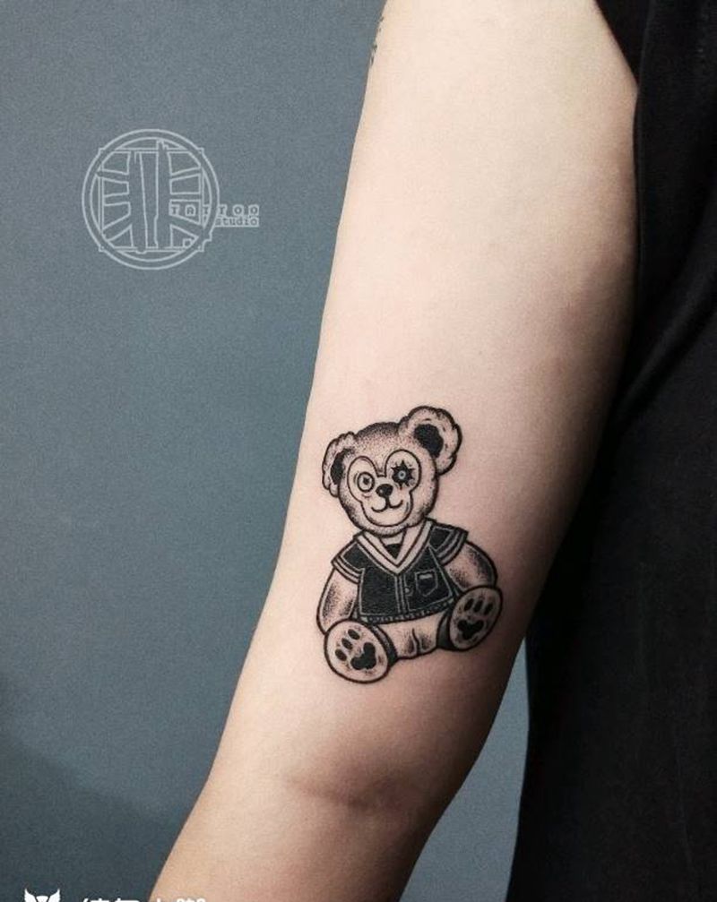 当前位置: 首页 >浙江省杭州市纹身店-非·刺青工作室纹身图案>小熊纹身图片_手臂点刺Old School纹身图案