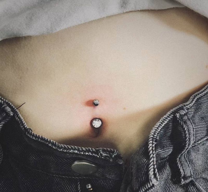 脐钉纹身图片_腹部New School欧美写实脐钉穿孔纹身图案