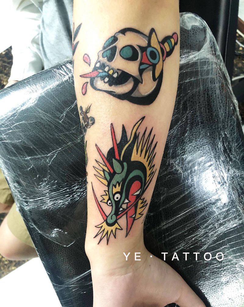 • T网红王老大花腿龙纹身图片_腿部新传统纹身图案