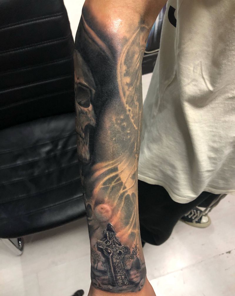 当前位置: 首页 >浙江省杭州市纹身店-也刺青纹身图案>欧美骷髅纹身图片_手臂欧美写实纹身图案