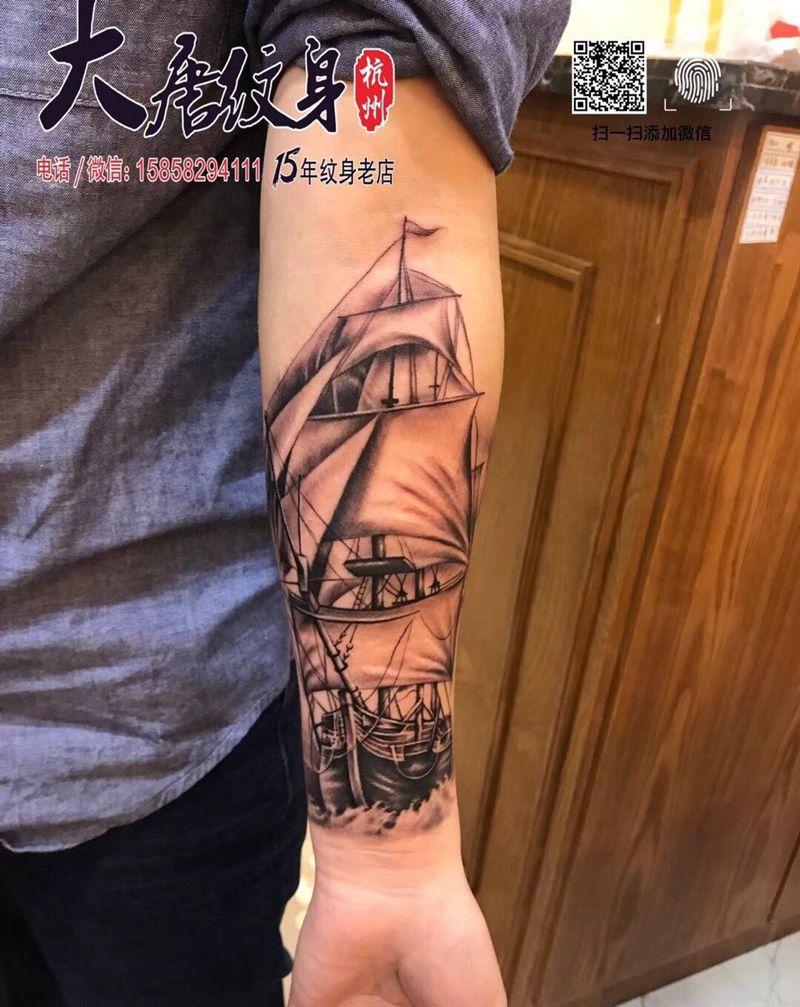 当前位置: 首页 >浙江省杭州市纹身店-大唐纹身纹身图案>帆船纹身图片