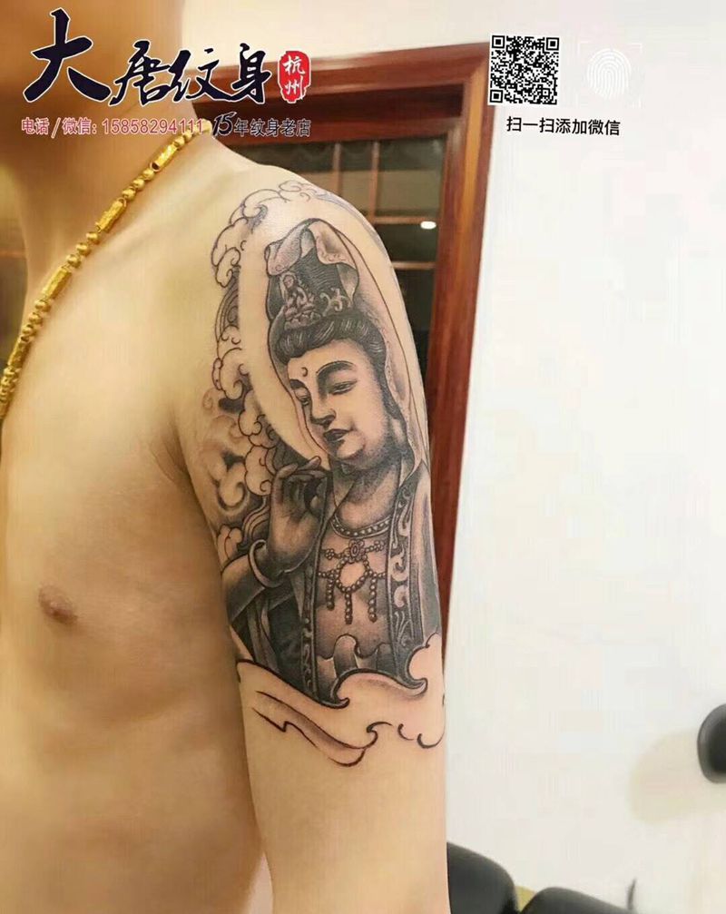 当前位置: 首页 >浙江省杭州市纹身店-大唐纹身纹身图案>大臂关音纹身图片