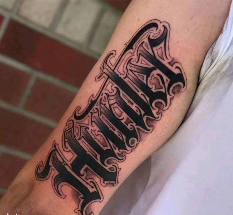 花体字纹身图片_手臂花体字纹身图案